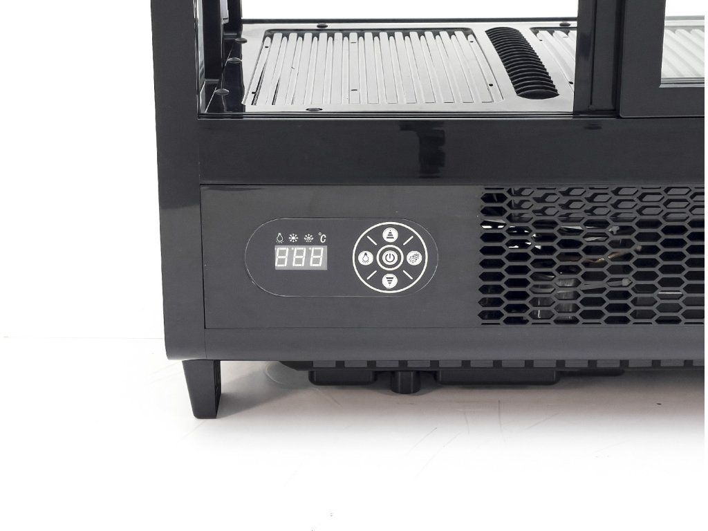 Ta witryna to nie jest zwykłe chłodzące pudło. Dzięki nowoczesnemu czarnemu wzornictwu i zaokrąglonemu szkłu wygląda jak szkatułka na biżuterię w luksusowym butiku. Oświetlenie LED podkreśli każdy element wewnątrz, więc Twoje produkty zawsze będą w centrum uwagi.