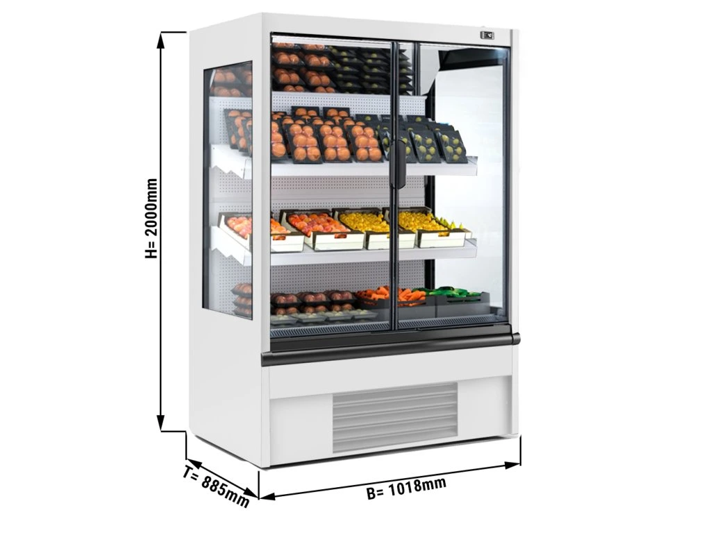 Witryna chłodnicza naścienna - 1018 mm - 528 litrów - z oświetleniem LED, izolowanymi szklanymi drzwiami & 2 półkami
