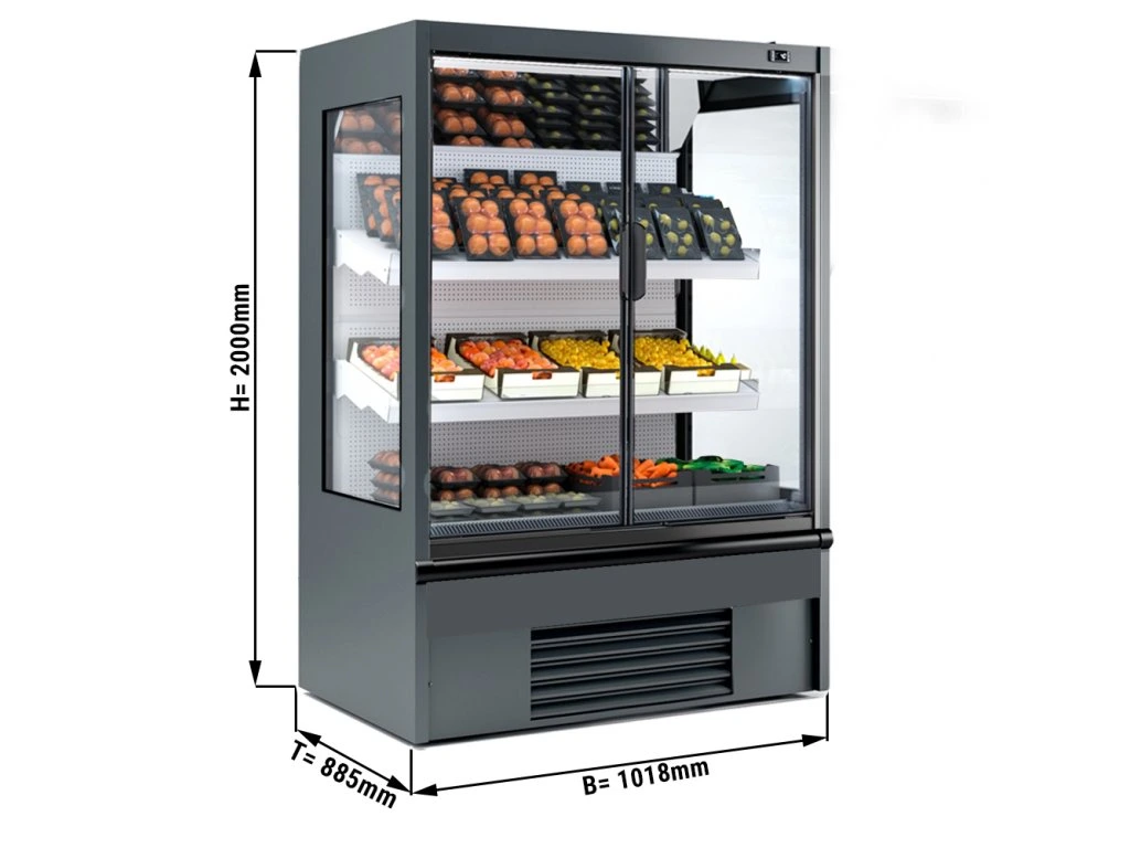 Witryna chłodnicza naścienna - 1018 mm - 528 litrów - z oświetleniem LED, izolowanymi szklanymi drzwiami & 2 półkami