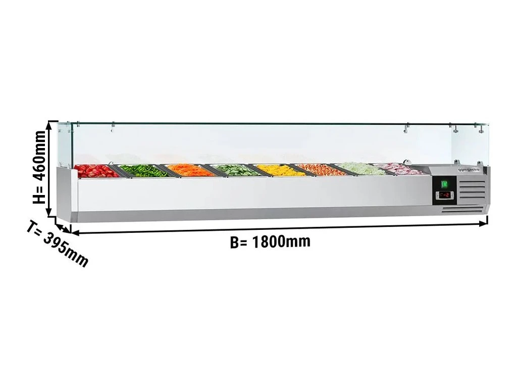 Witryna chłodnicza nadstawna PREMIUM - 1800x395mm - 8x GN 1/3