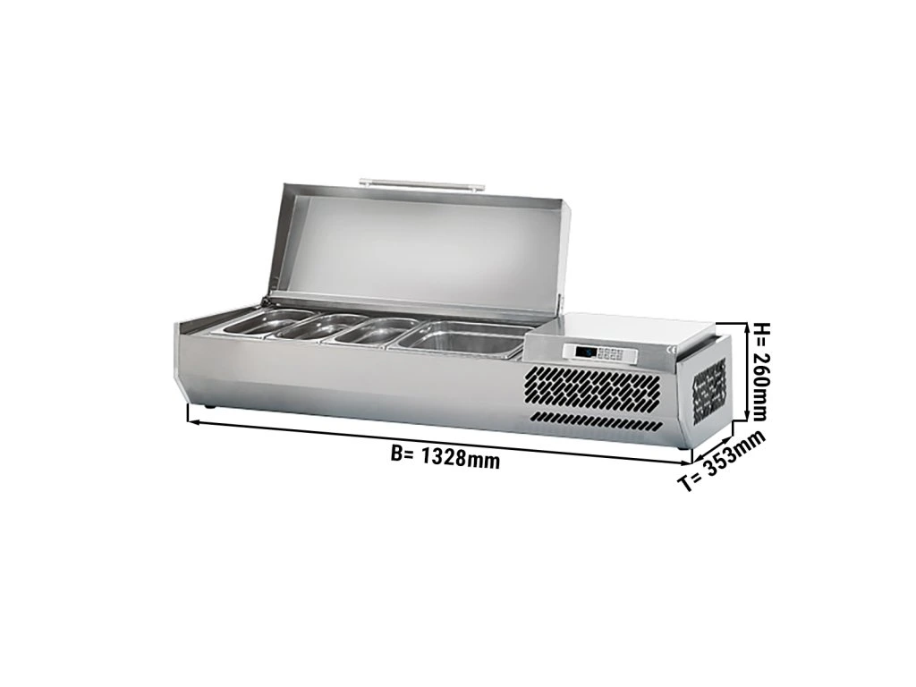 Witryna chłodnicza nadstawna PREMIUM PLUS - 1328x353mm - 5x GN 1/4