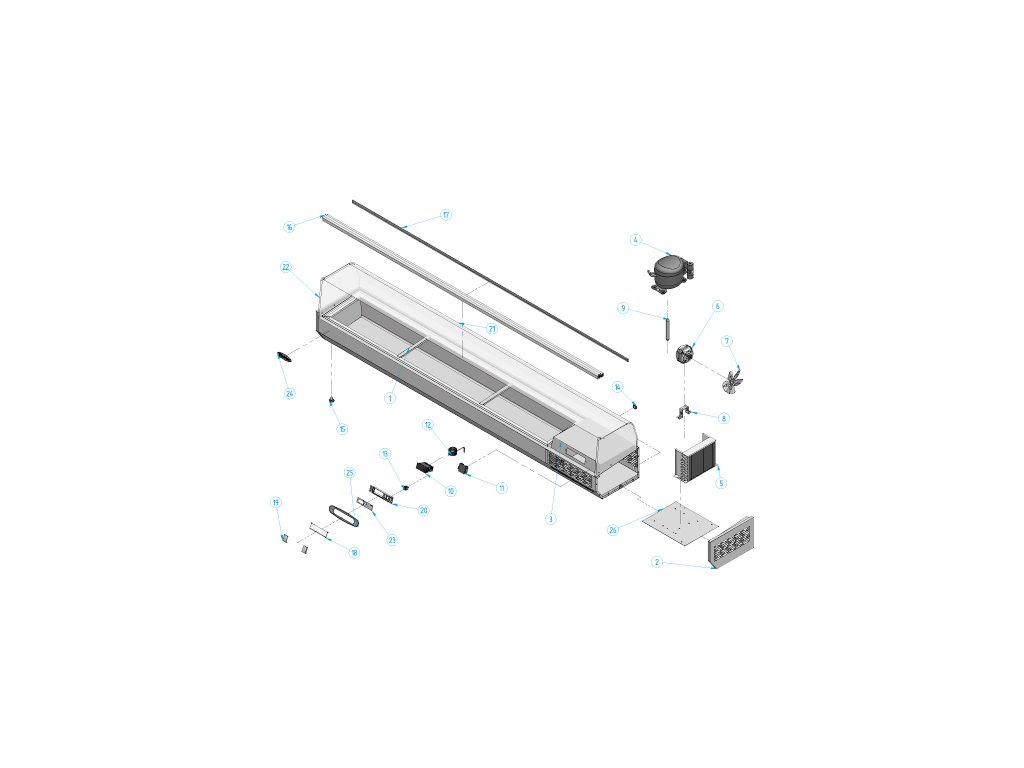 Nadstawna witryna chłodnicza PREMIUM PLUS - 2300x353mm - 11x GN 1/4