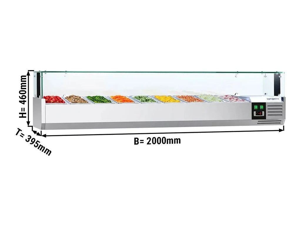 Nadstawna witryna chłodnicza PREMIUM z oświetleniem LED - 2000x395mm - 9x GN 1/3