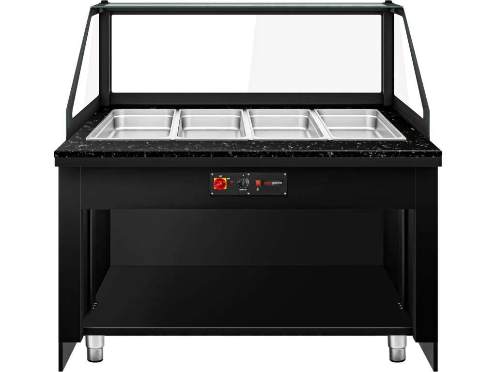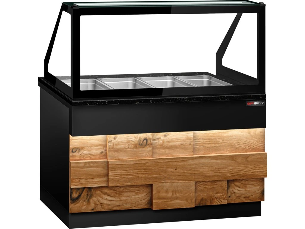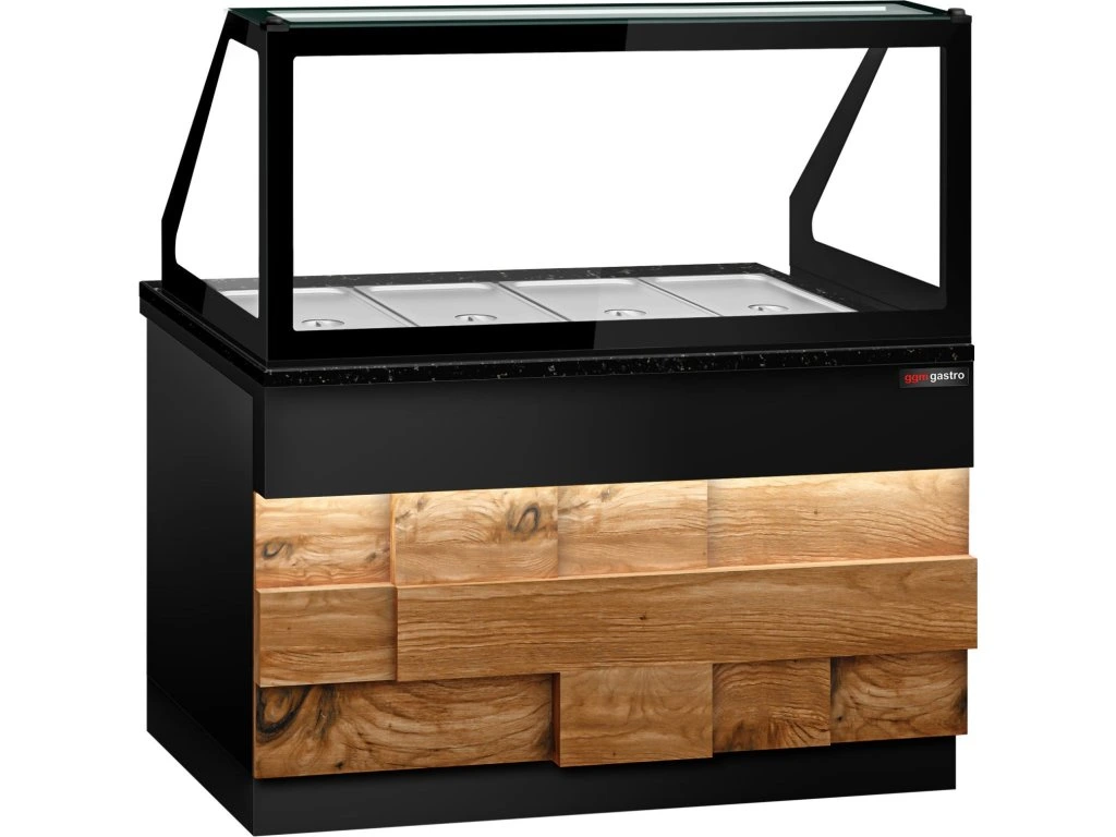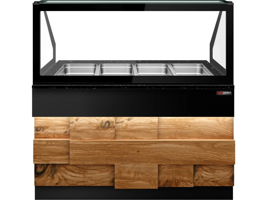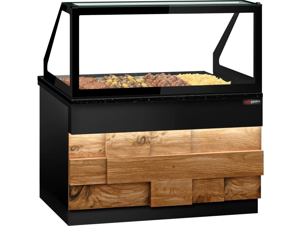 Witryna grzewcza TORONTO - 1500 mm - drewniany panel przedni - do 4x GN 1/1 - blat z czarnego granitu