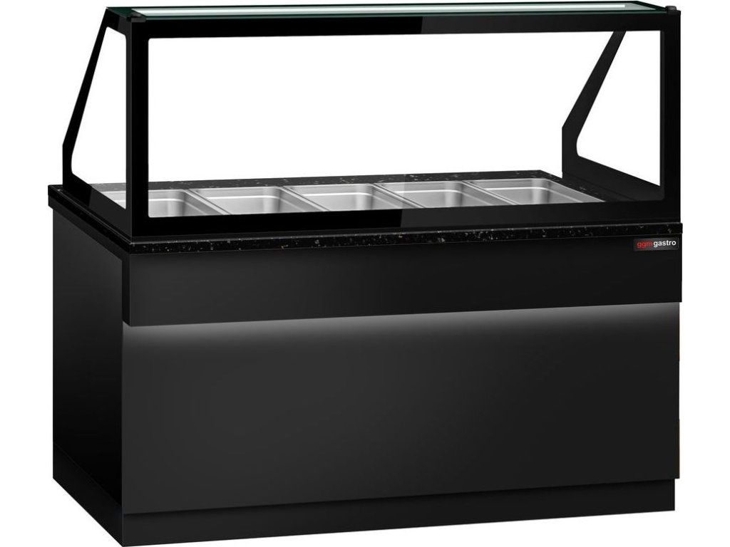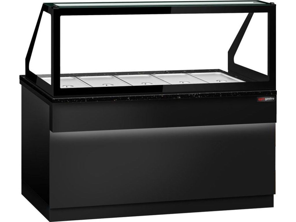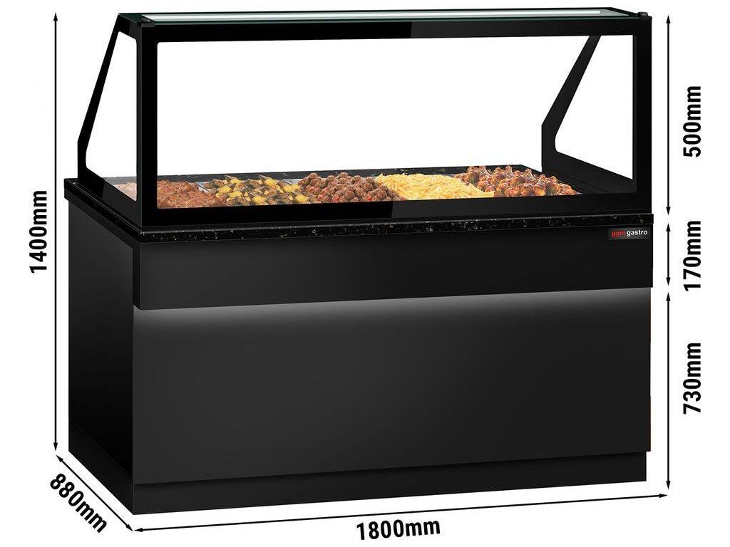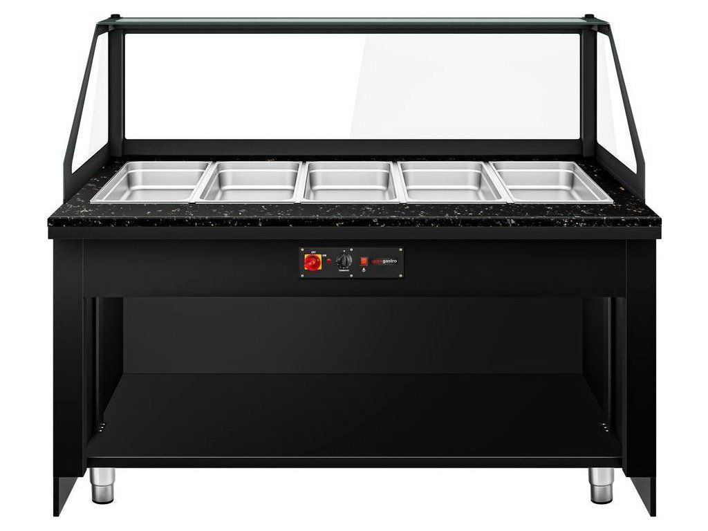 Witryna grzewcza TORONTO - 1800 mm - dla 5x GN 1/1 - czarny panel przedni - blat z czarnego granitu