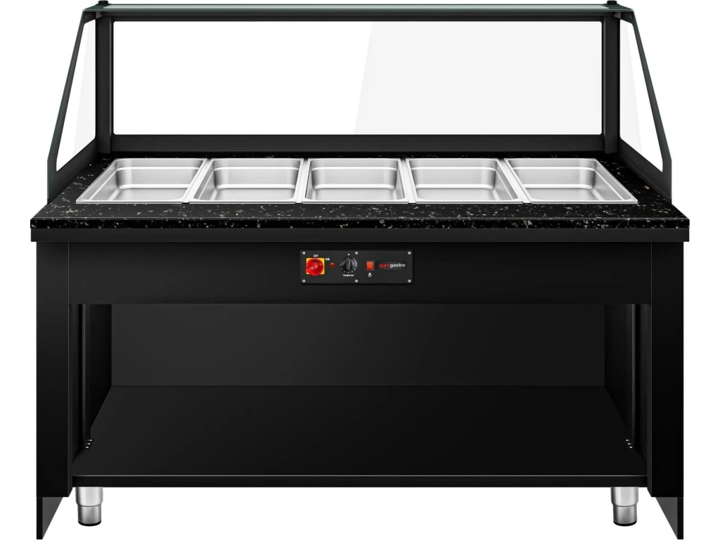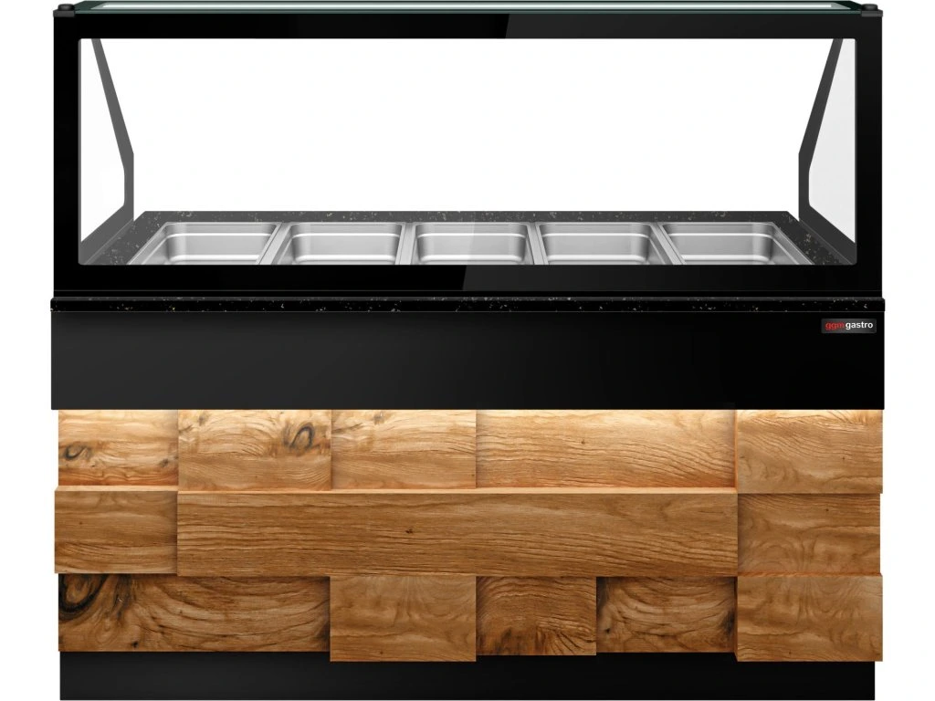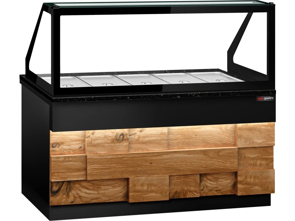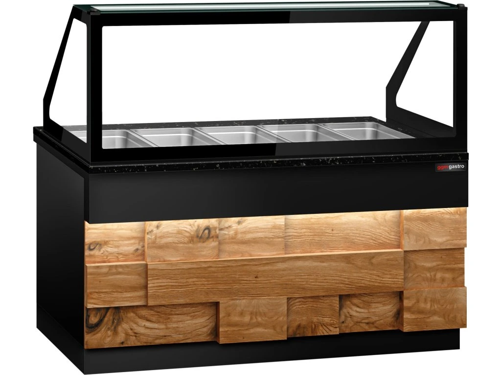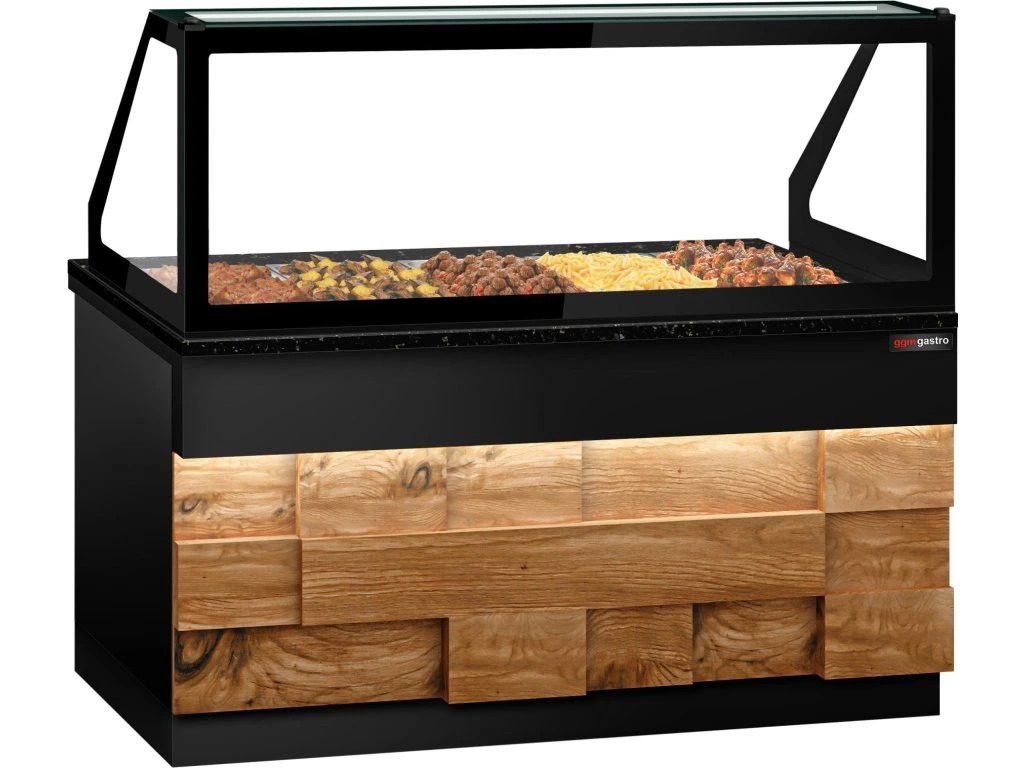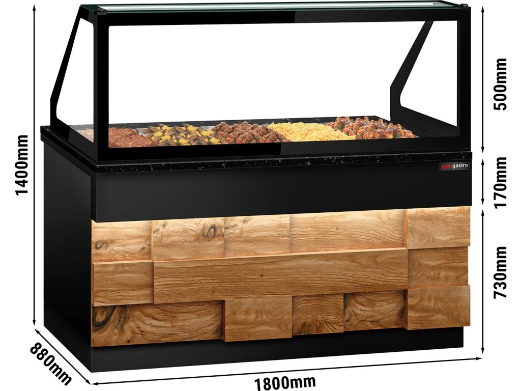 Witryna grzewcza TORONTO - 1800 mm - drewniany panel przedni - do 5x GN 1/1t - blat z czarnego granitu