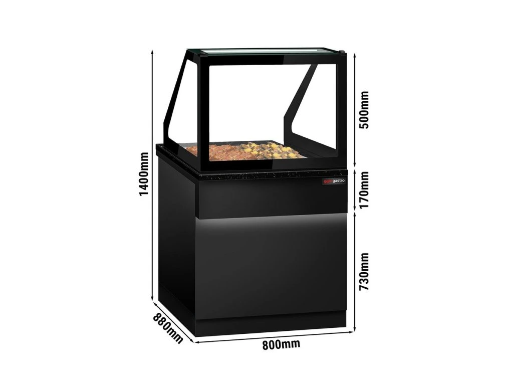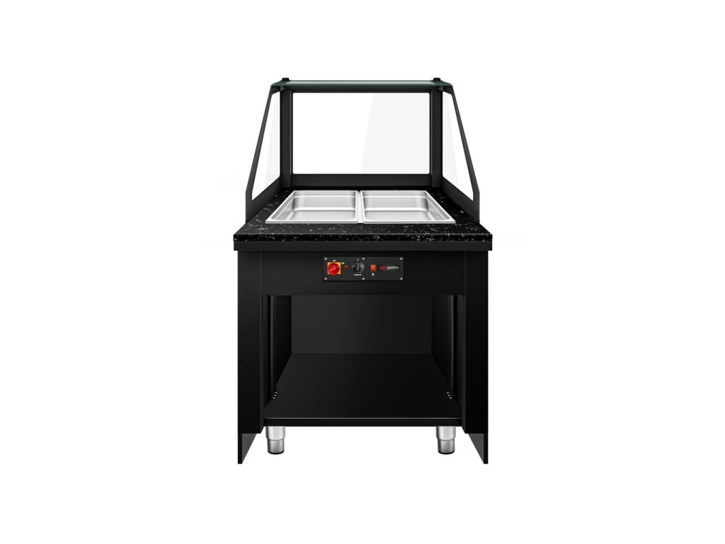 Witryna grzewcza TORONTO - 800 mm - dla 2x GN 1/1 - czarny panel przedni - blat z czarnego granitu