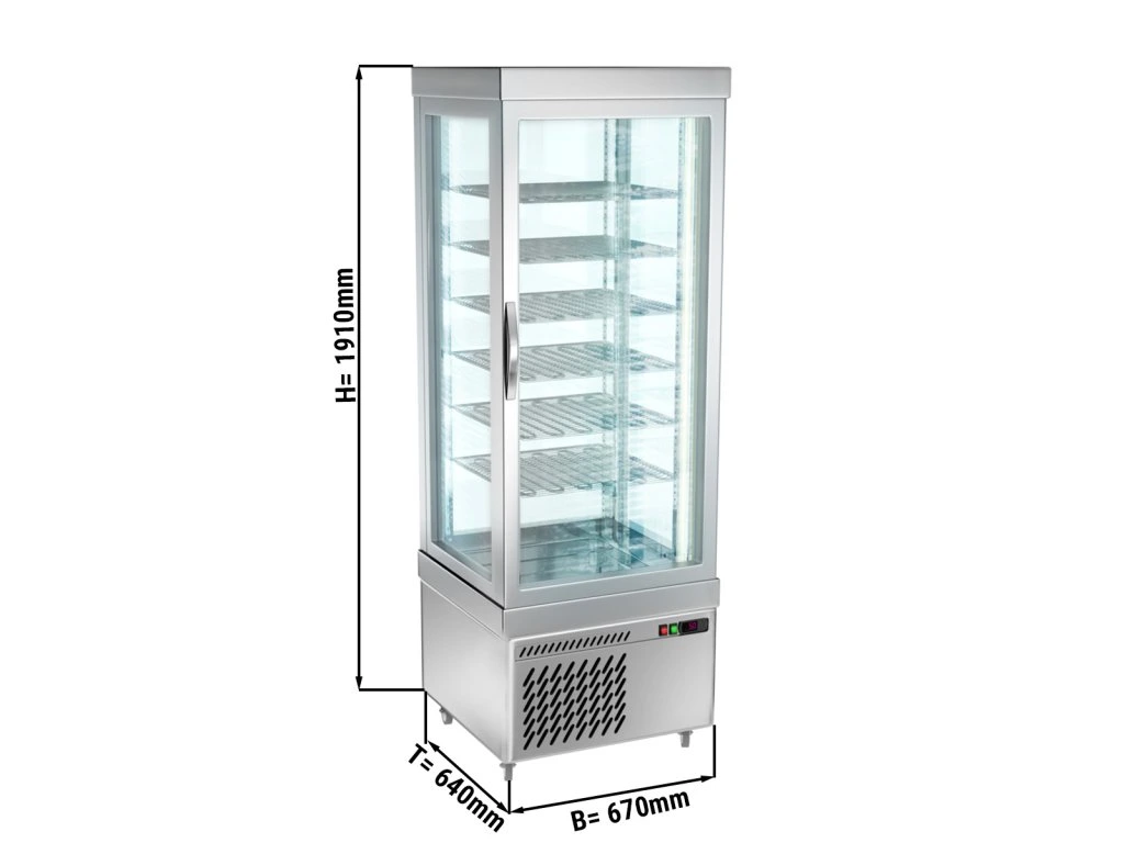 Witryna mroźnicza panoramiczna - 430 litrów - 670 mm - 6 półek - srebrna