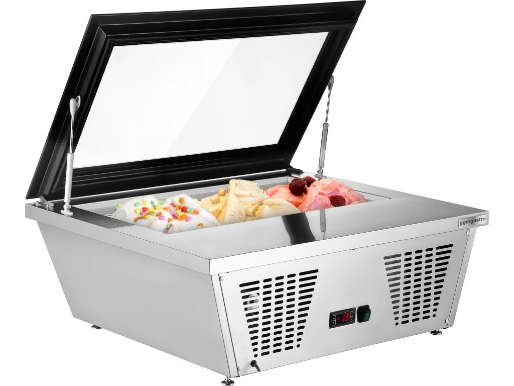 Witryna stołowa na lody - 870 mm - statyczna - na 4 pojemniki 5 l - pokrywa prosta - pokrywa otwierana na stronę obsługi