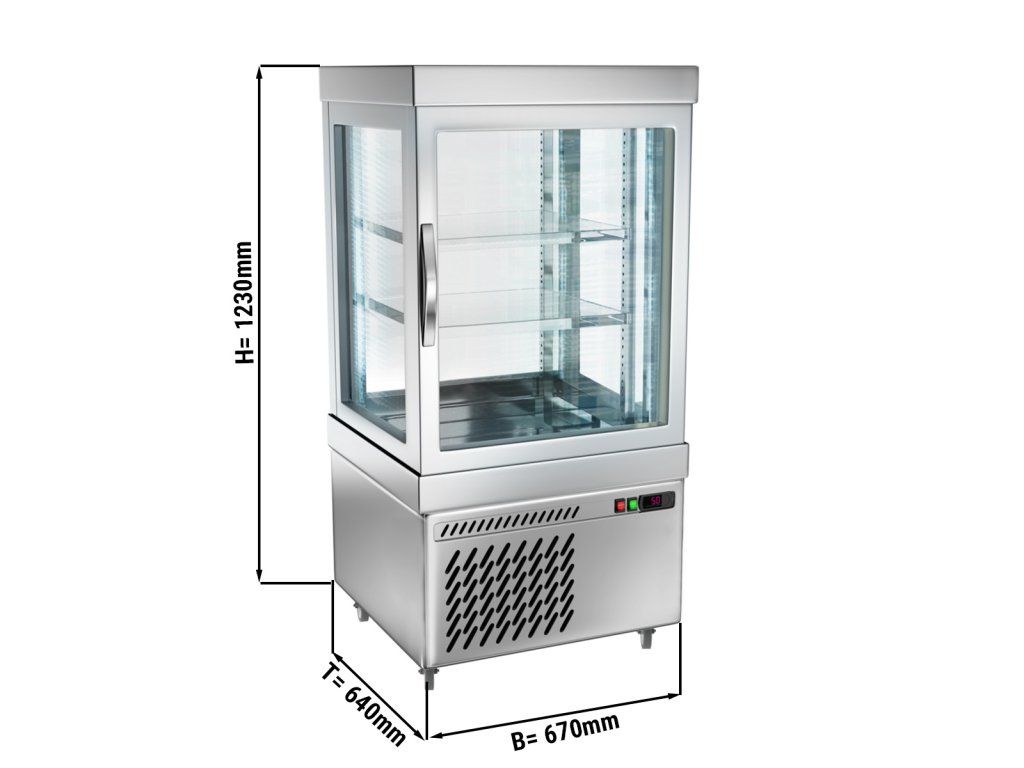 Witryna panoramiczna - 230 litrów - 670 mm - 2 półki - srebrna