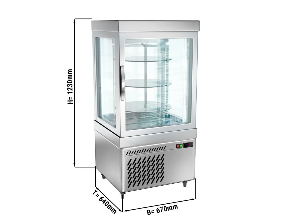 Witryna panoramiczna - 230 litrów - 670 mm - 3 półki - srebrna