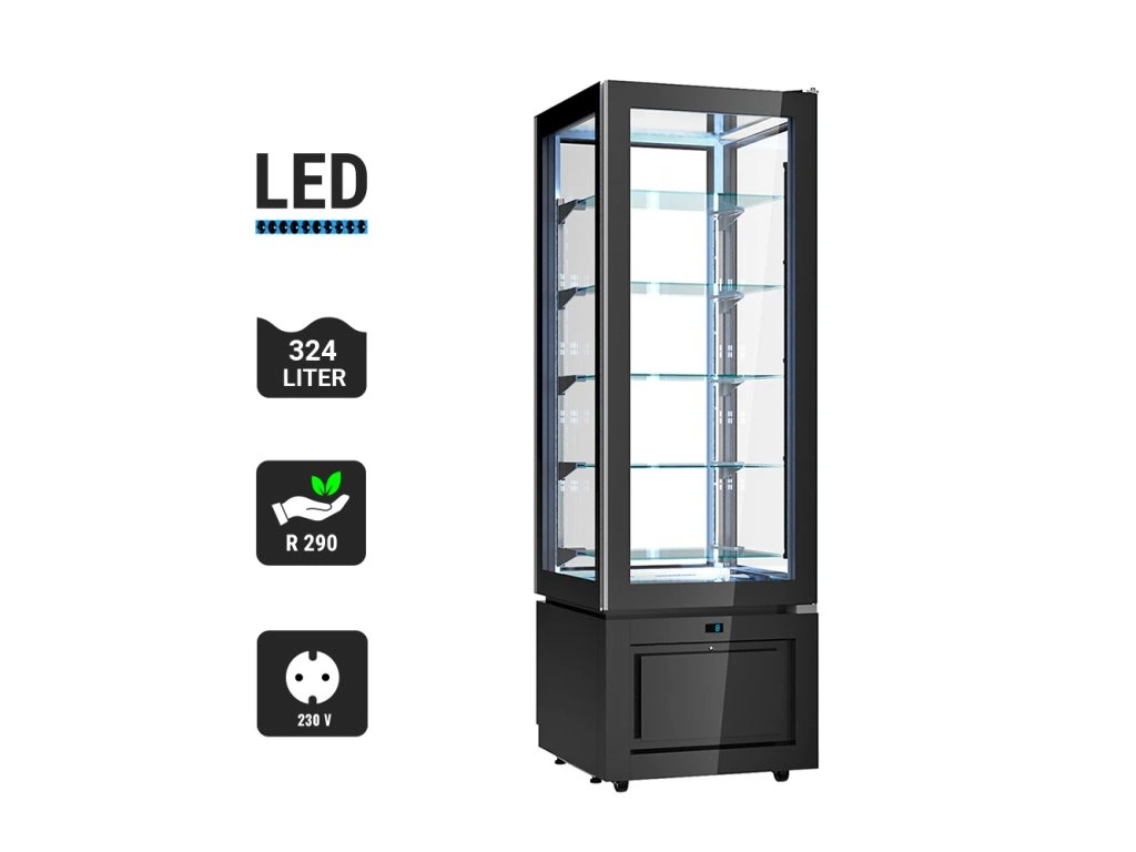 Witryna panoramiczna - 324 litry - 600 mm - 5 półek - Czarny