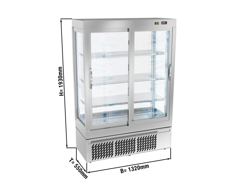 Witryna panoramiczna - 855 litrów - 1320 mm - 3 półki - srebrna