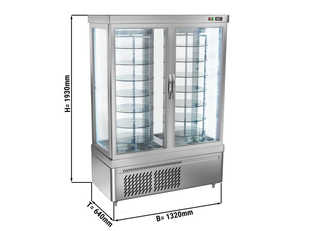 Witryna panoramiczna - 935 litrów - 1320 mm - 14 półek - srebrna