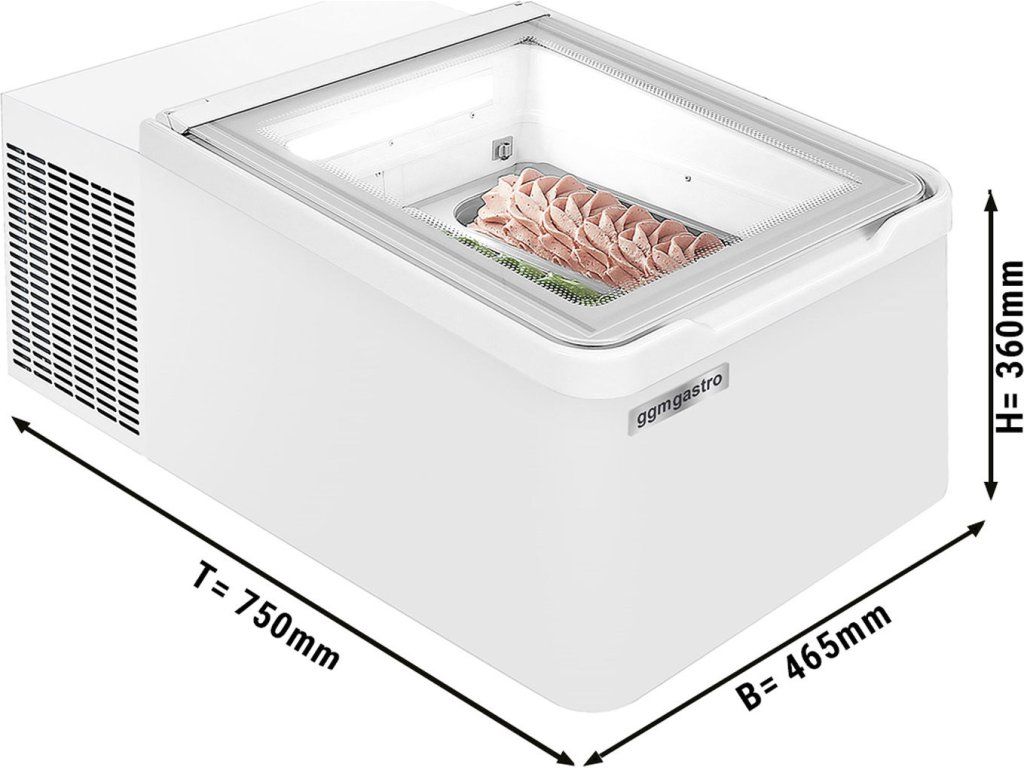 Stołowa witryna na lody - 460 mm - Statyczna - na 2x 5 litrowe pojemniki na lody - Pokrywa otwierana na stronę konsumenta
