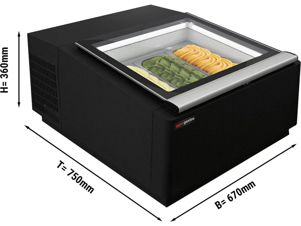 Witryna stołowa na lody - 670 mm - Statyczna - na 3 pojemniki 5 L - Pokrywa otwierana na stronę serwisową