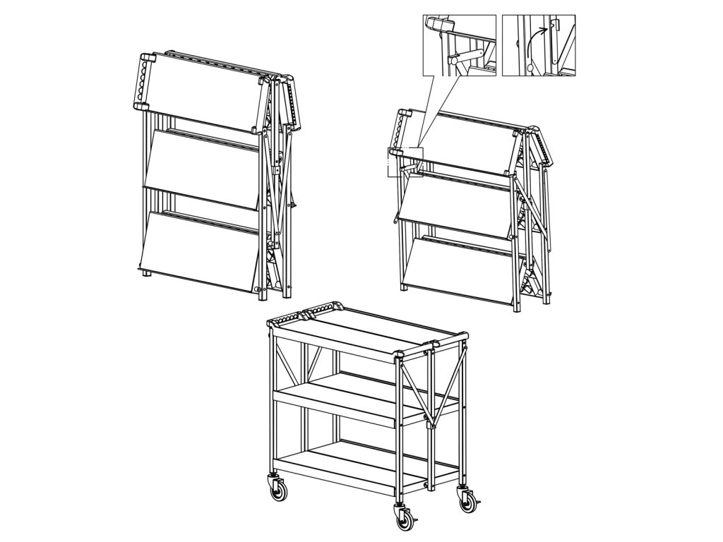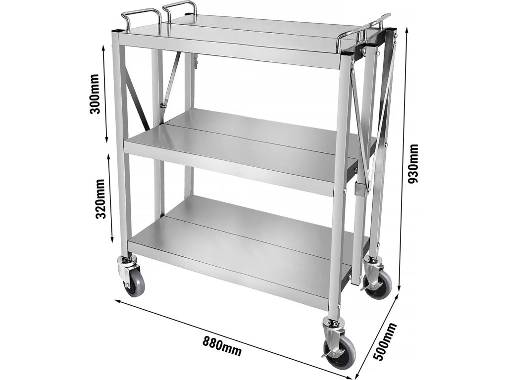 Wózek do serwowania - składany - 880x500 mm - z 3 półkami