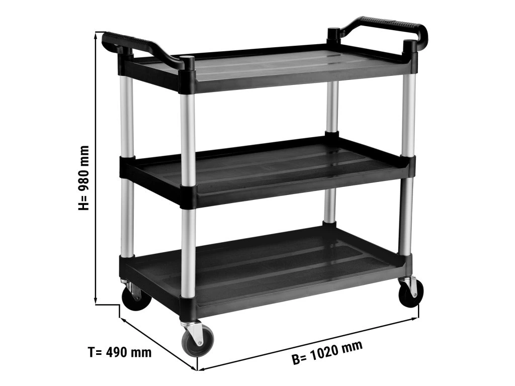 Wózek do serwowania z tworzywa sztucznego - 1020x490 mm - z 3 półkami do przechowywania