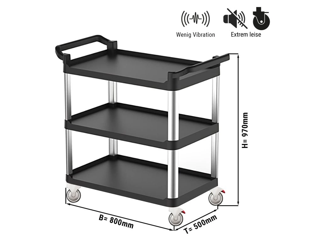 Wózek do serwowania z tworzywa sztucznego - 800x500 mm - z 3 półkami do przechowywania