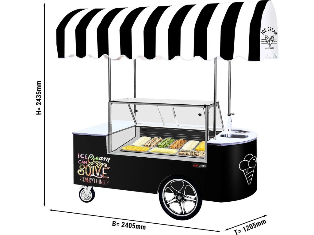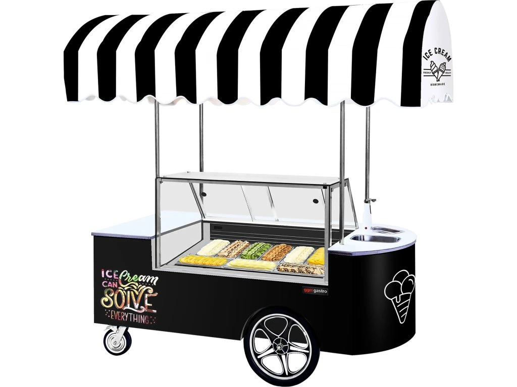 Wózek na lody - 2146 mm - ze zlewem & kwadratową ladą na lody - na 9 pojemników o pojemności 5 litrów
