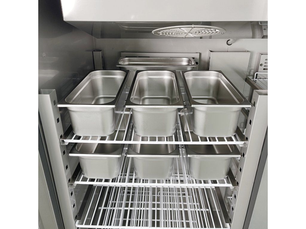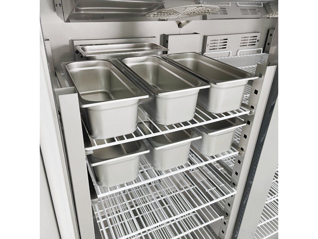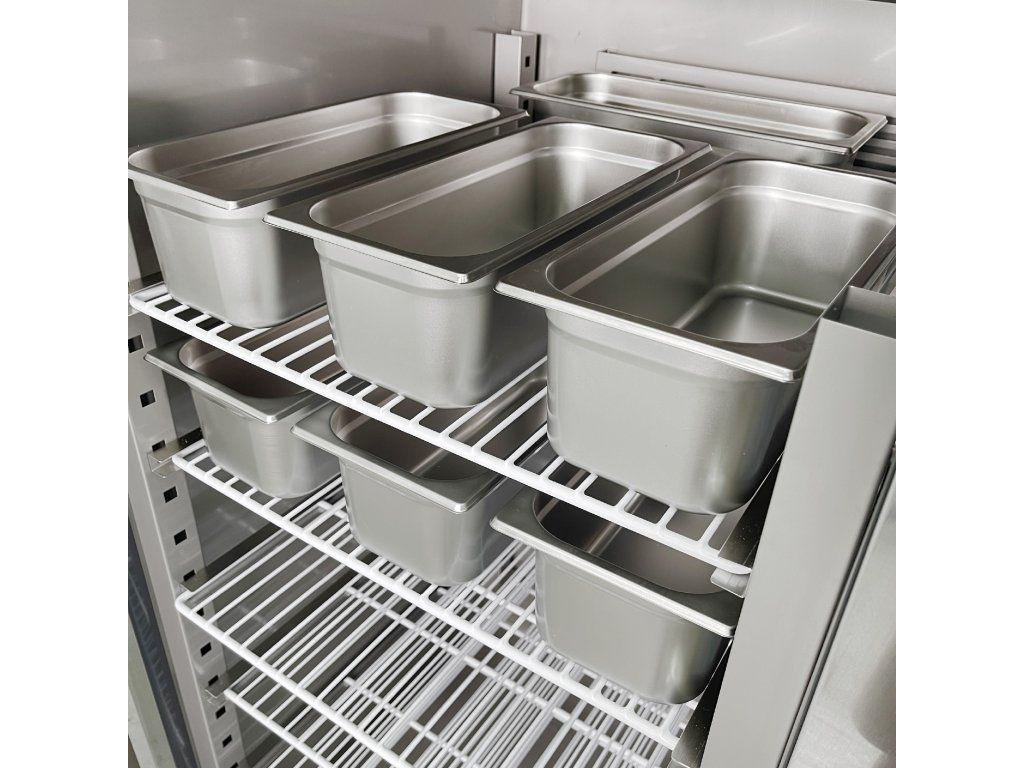 Regulowane półki – umożliwiają elastyczne przechowywanie różnych typów pojemników (np. GN 2/1)