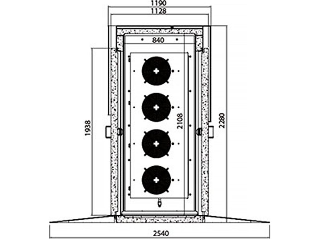 - Wymiar wewnętrzny: szer. X głęb. X wys.: 945 mm x 840 mm x 2.107 mm