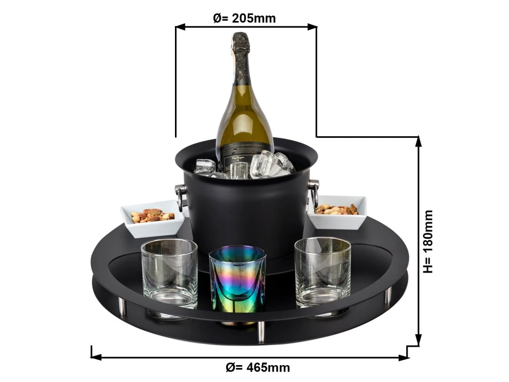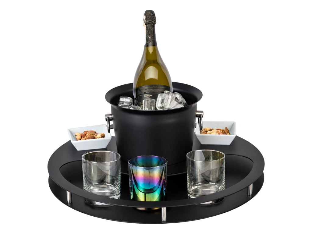 Zestaw barowy z chłodziarką do butelek i 2 tacami na przekąski - czarny