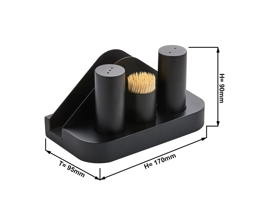 - Menage - 4 sztuki w stojaku - na serwetki, sól, pieprz i wykałaczki