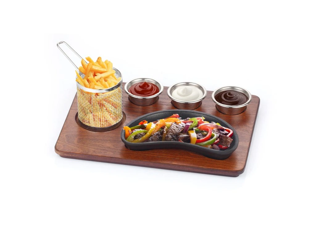 Zestaw do serwowania fajity - 6 częściowy - patelnia żeliwna w kształcie nerki