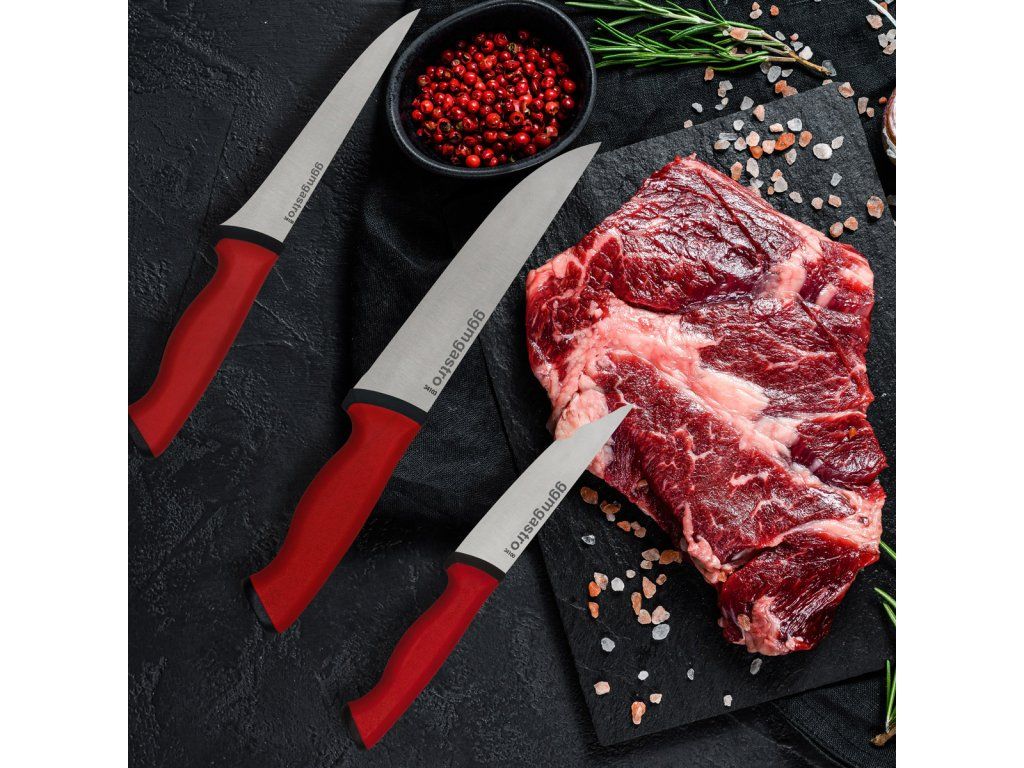 - Zestaw noży do mięsa, włącznie z kostką 3-częściowa