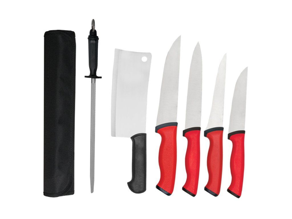 - Zawartość zestawu: 2 noże do mięsa, 1 nóż do gotowania, 1 nóż do odkostniania & 1 stal do ostrzenia