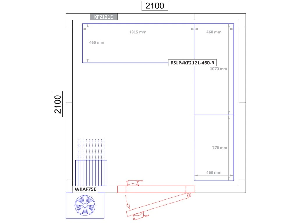 - Tylna półka z prawej strony szer. x gł. x wys: 776 x 460 x 1800 mm
