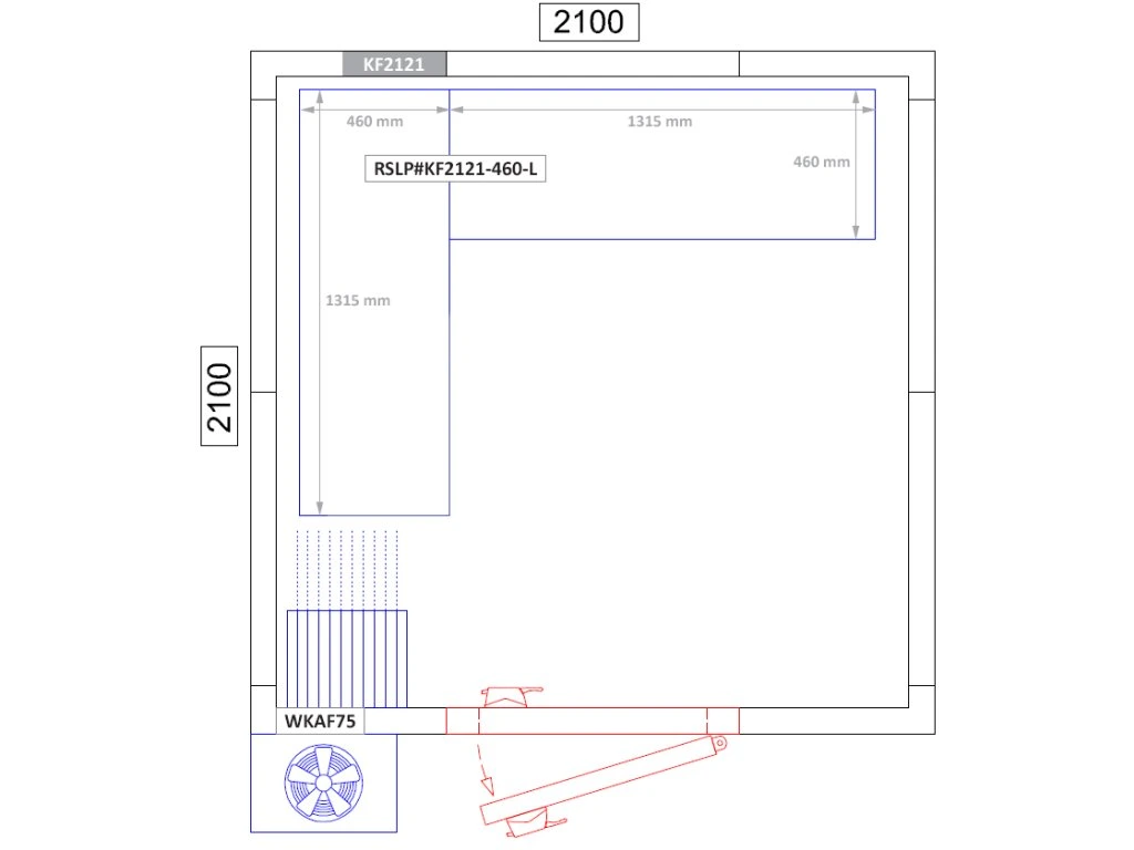 - Półka z lewej strony szer. x gł. x wys: 1315 x 460 x 1800 mm