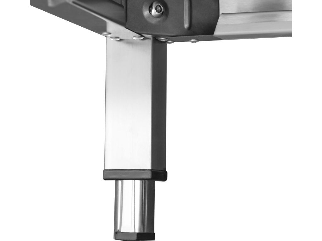 - Kwadratowe nogi ze stali nierdzewnej ze stopkami o regulowanej wysokości