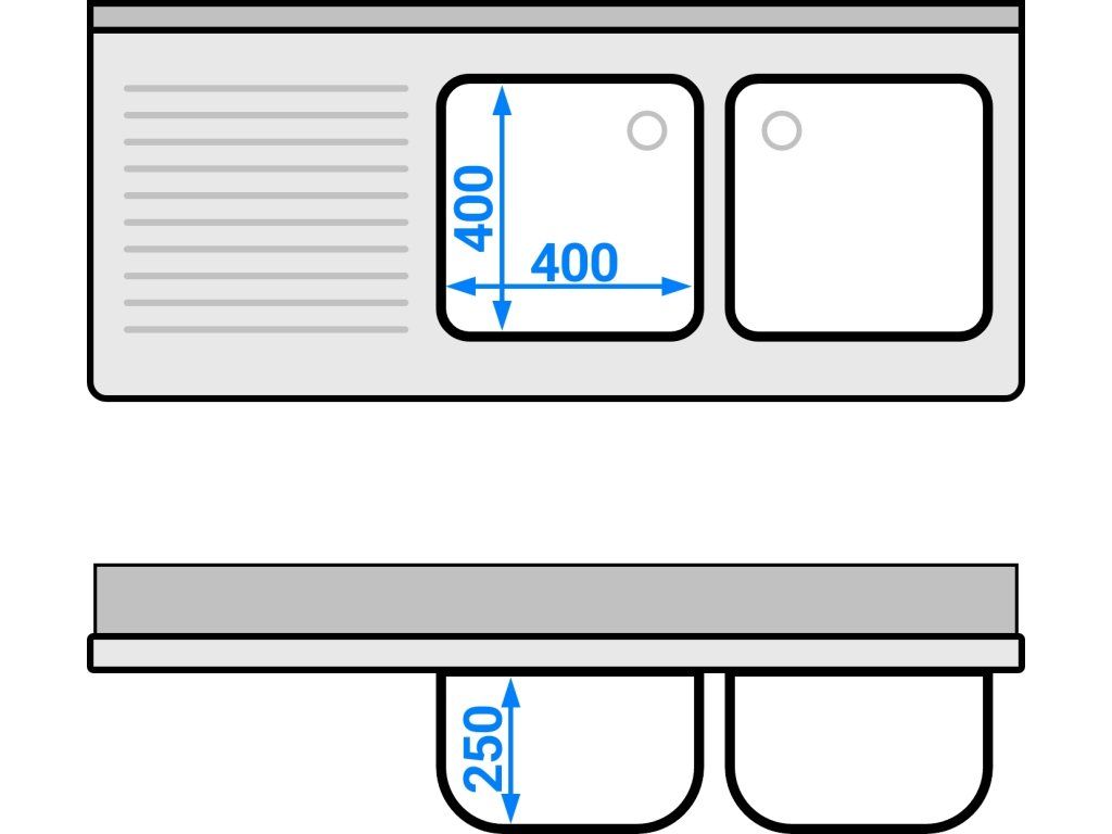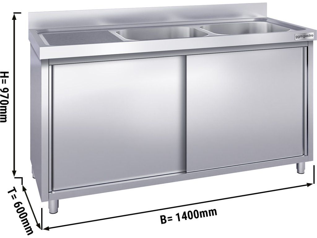 Szafka pod zlewozmywak PREMIUM - 1400x600 mm - z 2 zlewami po prawej stronie